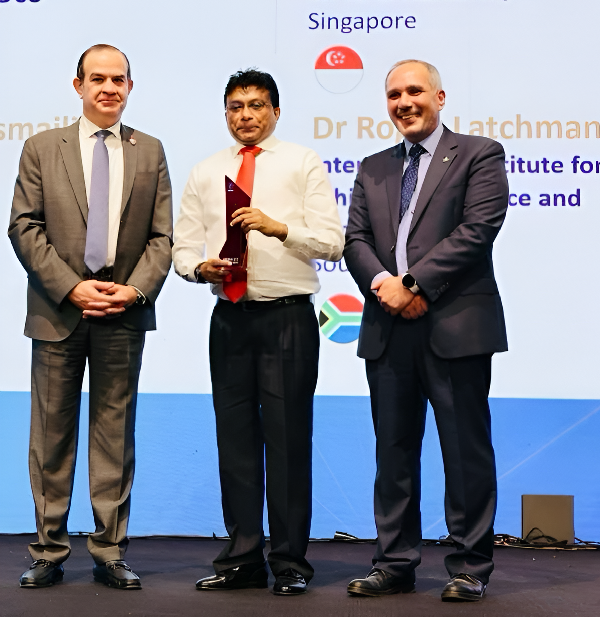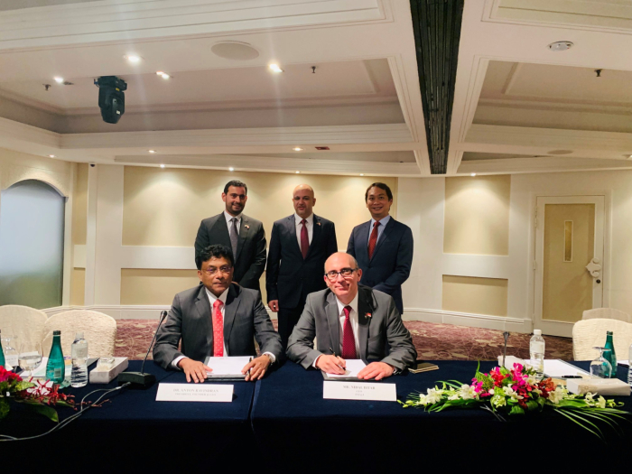 (26)–> Prof the Hon Stephen Martin, Mr. Shawn Huang and Prof Liz Bacon (UK) and Dr. Andy Koronios (CEO & MD, SmartSat CRC, Australia)